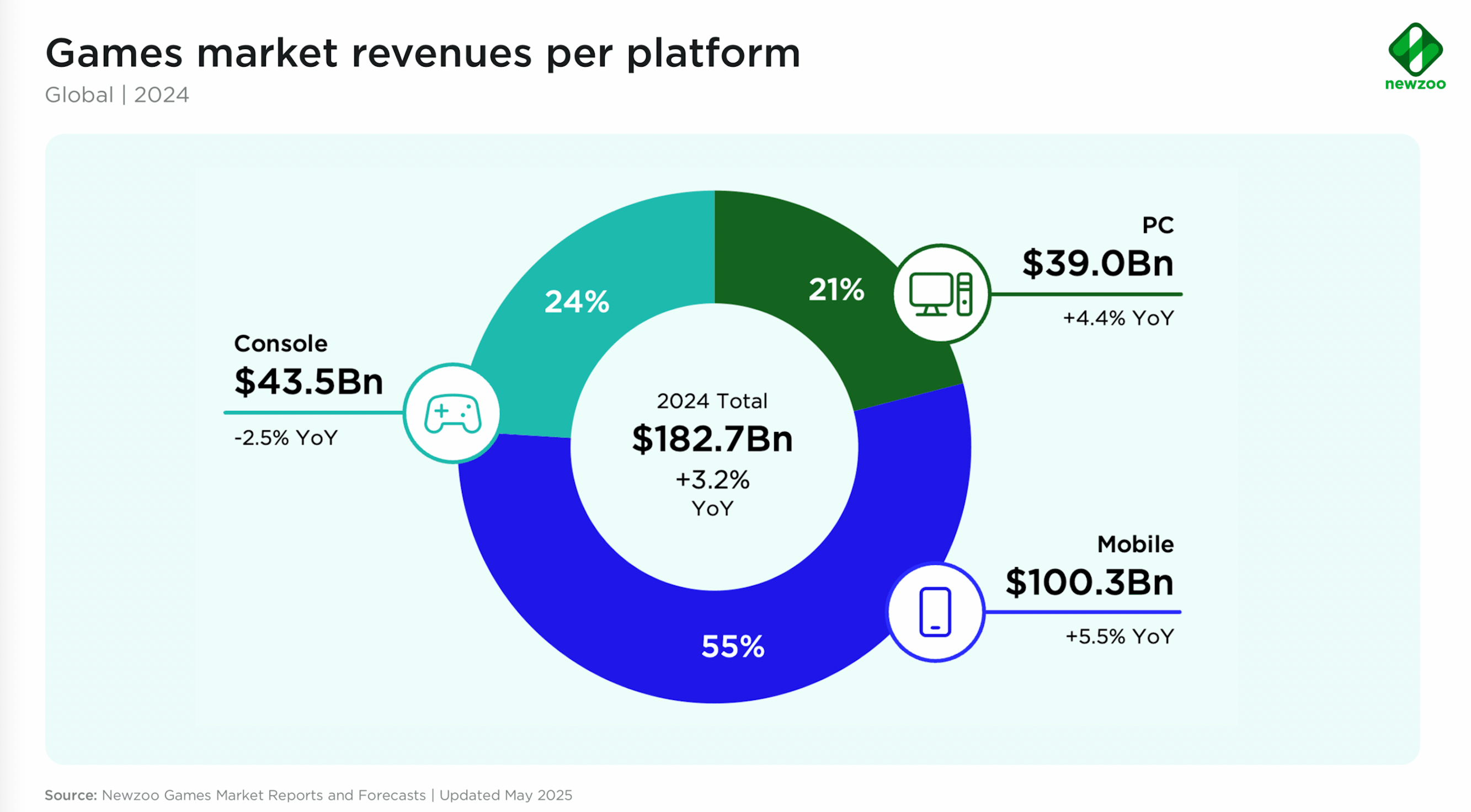 A crescere del 4,4% sono stati invece i giochi per Pc, trainati principalmente dalla Cina, grazie a una crescente base di giocatori sulle piattaforma Steam. Anche i ricavi del mercato mobile sono aumentati del 5,5%, con una crescita concentrata nelle Americhe e in Europa. Tra i titoli più performanti figurano Monopoly Go!, Royal Match, Roblox, Last War: Survival, Whiteout Survival e Brawl Stars.