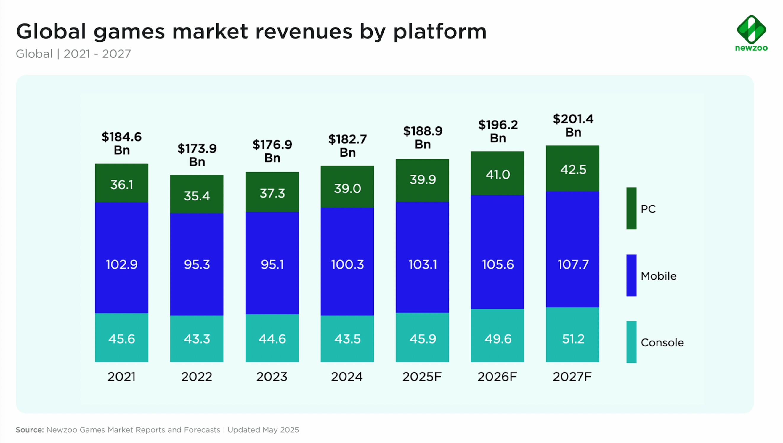 Amsterdam (Paesi Bassi) – La società di analisi Newzoo ha aggiornato il suo rapporto annuale sull’industria dei videogiochi 2024, che contiene i dati del 2024, ma fornisce anche una previsione sull’andamento del mercato da qui al 2027.