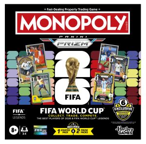 Con Monopoly Panini Prizm Fifa World Cup 2026 edition, non solo si comprano le proprietà, ma si costruisce una squadra di fuoriclasse scegliendo tra le stelle del calcio presenti nelle carte Panini, si rivivono partite storiche della Coppa del Mondo e si compete per dominare il tabellone in un torneo imprevedibile. Dopo aver selezionato i campioni, ci si muove sul tabellone cercando di prendere il controllo del maggior numero possibile di match della Fifa World Cup. Quando si finisce su una partita già controllata da un altro giocatore, è possibile ottenere punti attivando una sfida diretta: si confrontano le statistiche riportate sulle carte e si utilizzano i dadi speciali per incrementare tensione e imprevedibilità.