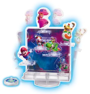 Spin ‘n Match Game, una trottola che mette alla prova riflessi e precisione, combinando azione e riconoscimento visivo in un gameplay sorprendentemente vario: si sceglie una carta, si fa ruotare la trottola e si cerca di fermare Mario sull’elemento corrispondente. Un gioco semplice da capire, ma difficilissimo da padroneggiare quando la velocità aumenta e la tensione sale.